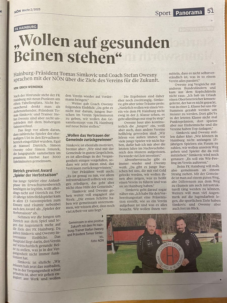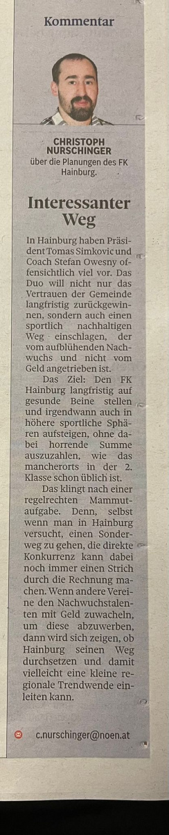 Die NÖN/Meinfussball berichten diese Woche über den neuen Weg in unserem Verein!